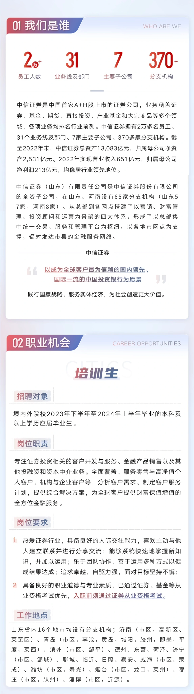 中信证券(山东) 2024届校园招聘